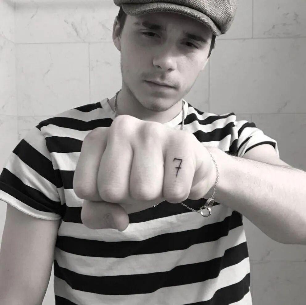 左小指上的“7”,贝克汉姆曼联时期的球衣号码,也是最标志的号码。