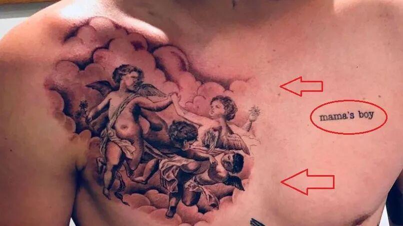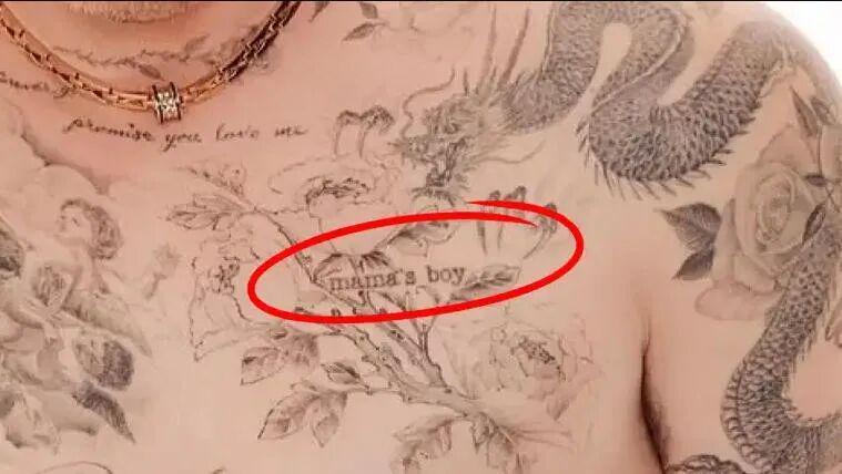 献给母亲维多利亚的也挺多,左胸有个“mama's boy”,妈宝男?