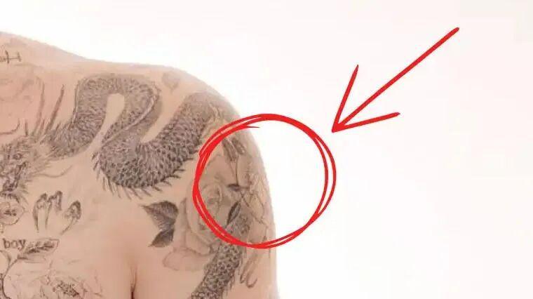 那时大布和家人还没有公开决裂,有消息人士称,大布并没有想盖住献给母亲的文身,仔细看还是能看到的;至于肩膀处的“爱心Mum”,只是杂志拍摄的角度问题,并没有被完全遮盖。